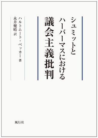 シュミットとハーバーマスにおける議会主義批判 議会主義に関するハーバーマスとシュミットの継受関係をめぐるいわゆる「ケネディ論争」を総括し、決着をつけた書。 ハルトムート・ベッカー 著/永井健晴 訳 A5判/360頁/本体4,500円 2015.11刊行 ISNB:978-4-86258-095-5